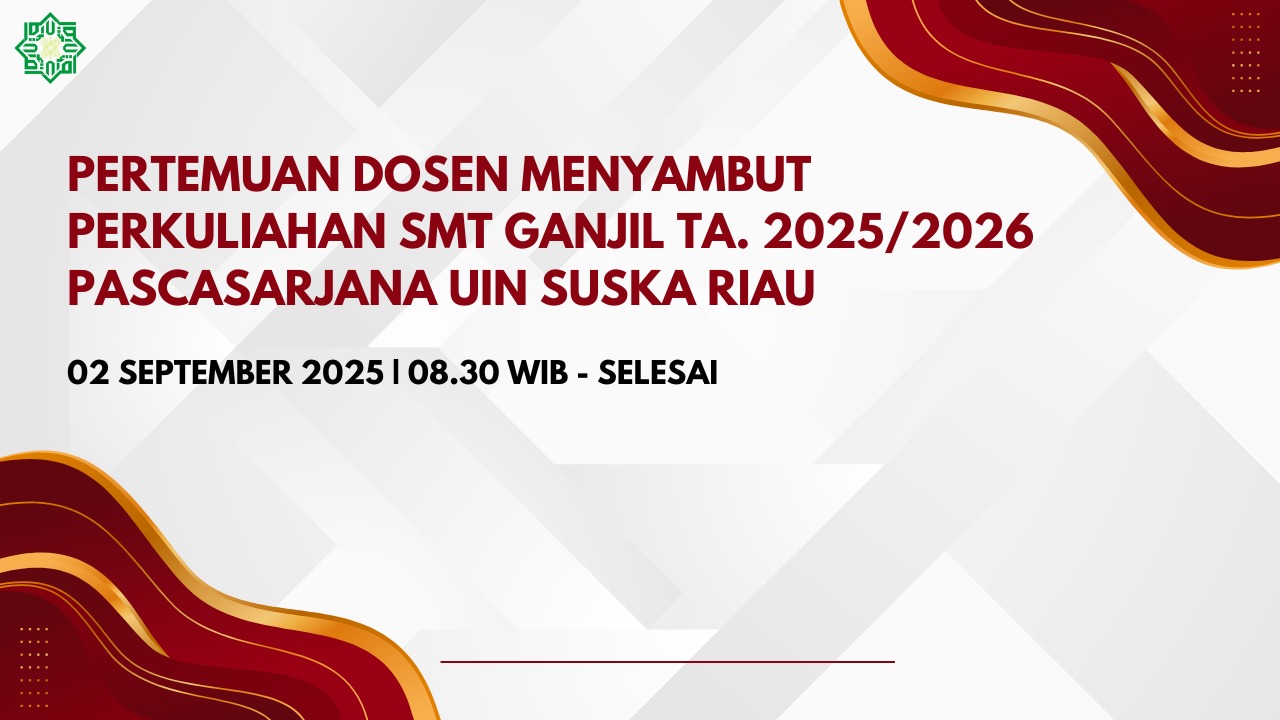 Pekanbaru, 2 September 2025 — Pascasarjana UIN Sultan Syarif Kasim (Suska) Riau menggelar pertemuan rutin dosen secara daring melalui platform Zoom pada tanggal 2 September 2025. Kegiatan ini dihadiri oleh seluruh dosen dari lingkungan Pascasarjana, termasuk dosen Program Studi Magister Pendidikan Agama Islam (PAI). Acara tersebut menghadirkan narasumber Prof. Dr. Helmiati, M.Ag, yang memaparkan materi...Read More